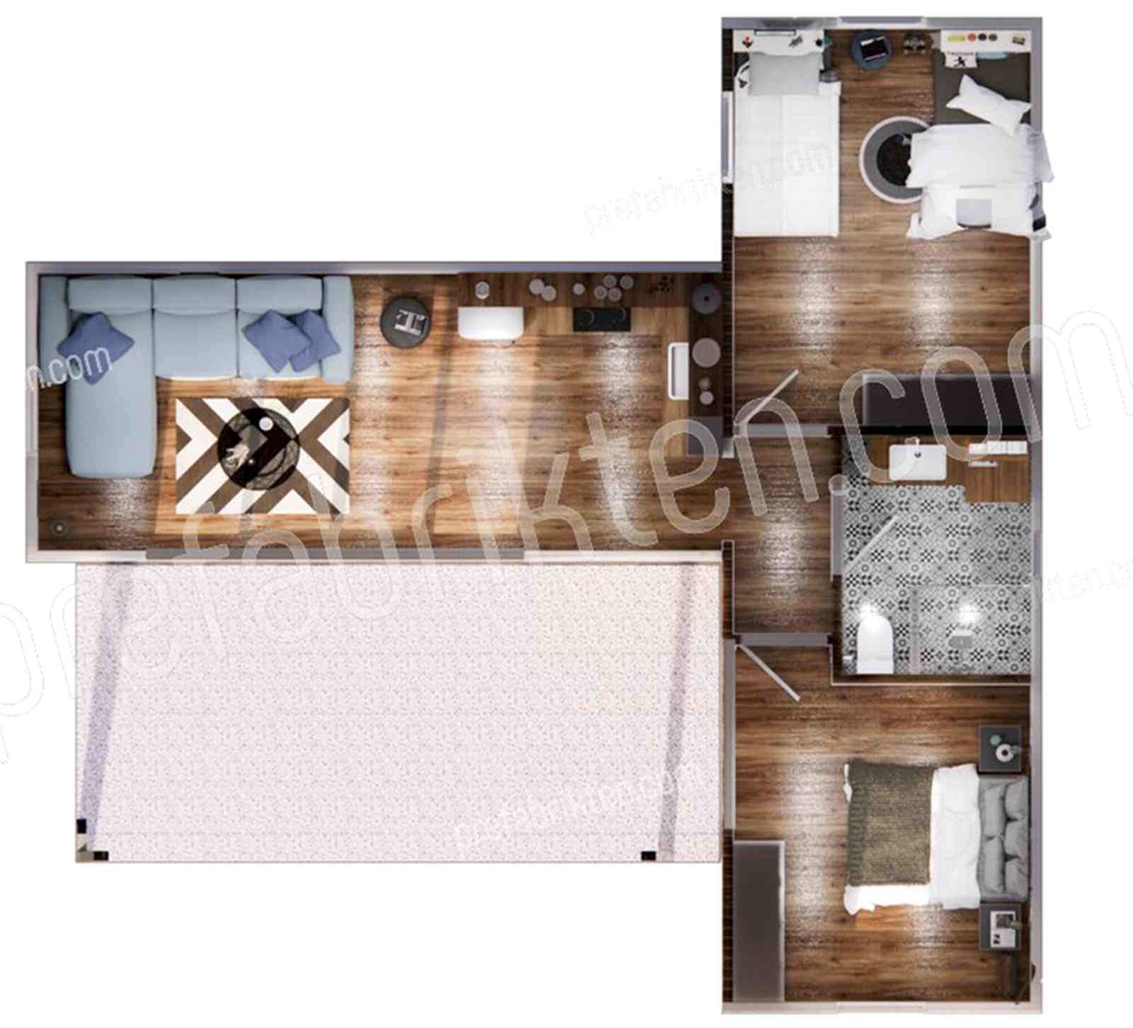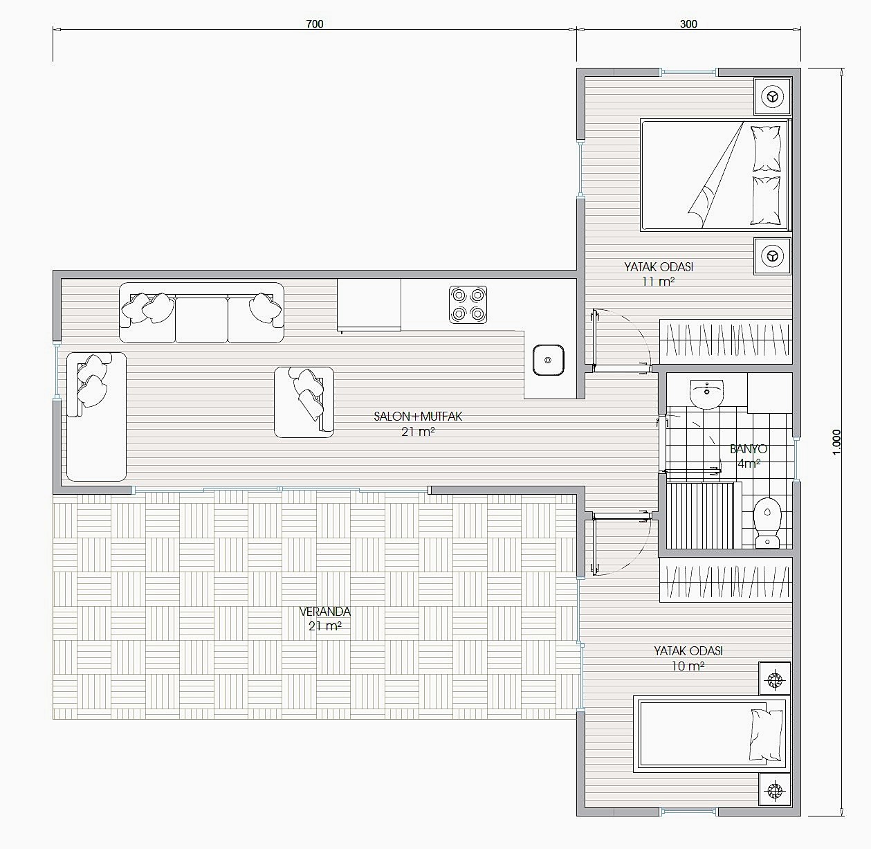 Koe-S Modül Ev-2+1 – 51m² + 15m² Veranda;