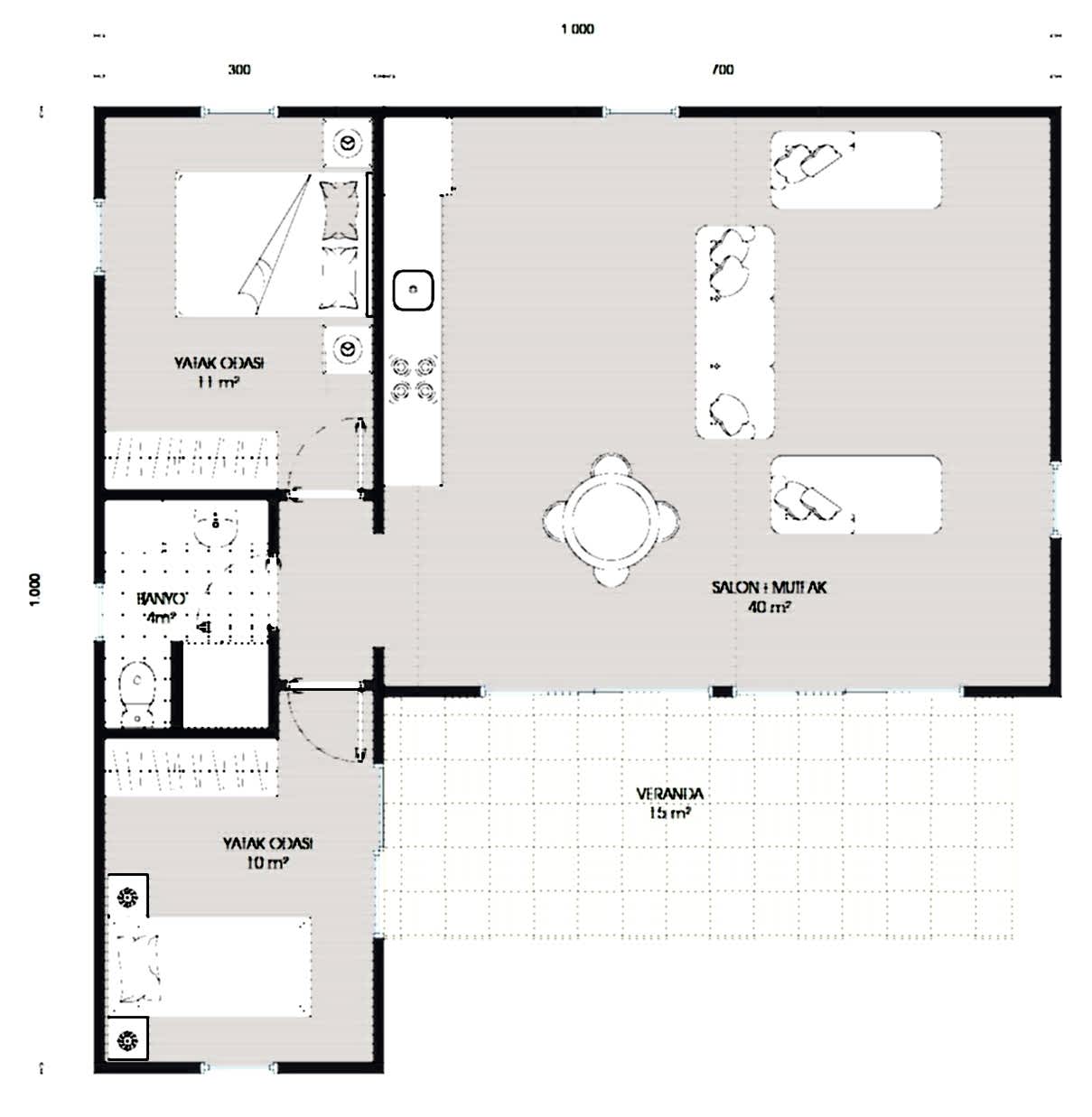 Koe-S Modül Ev-2+1 – 72m² + 15m² Veranda;