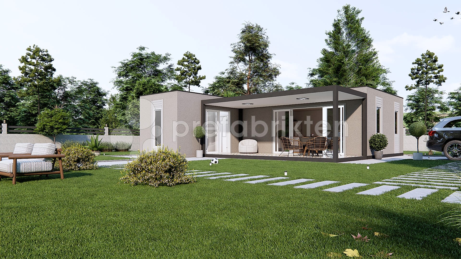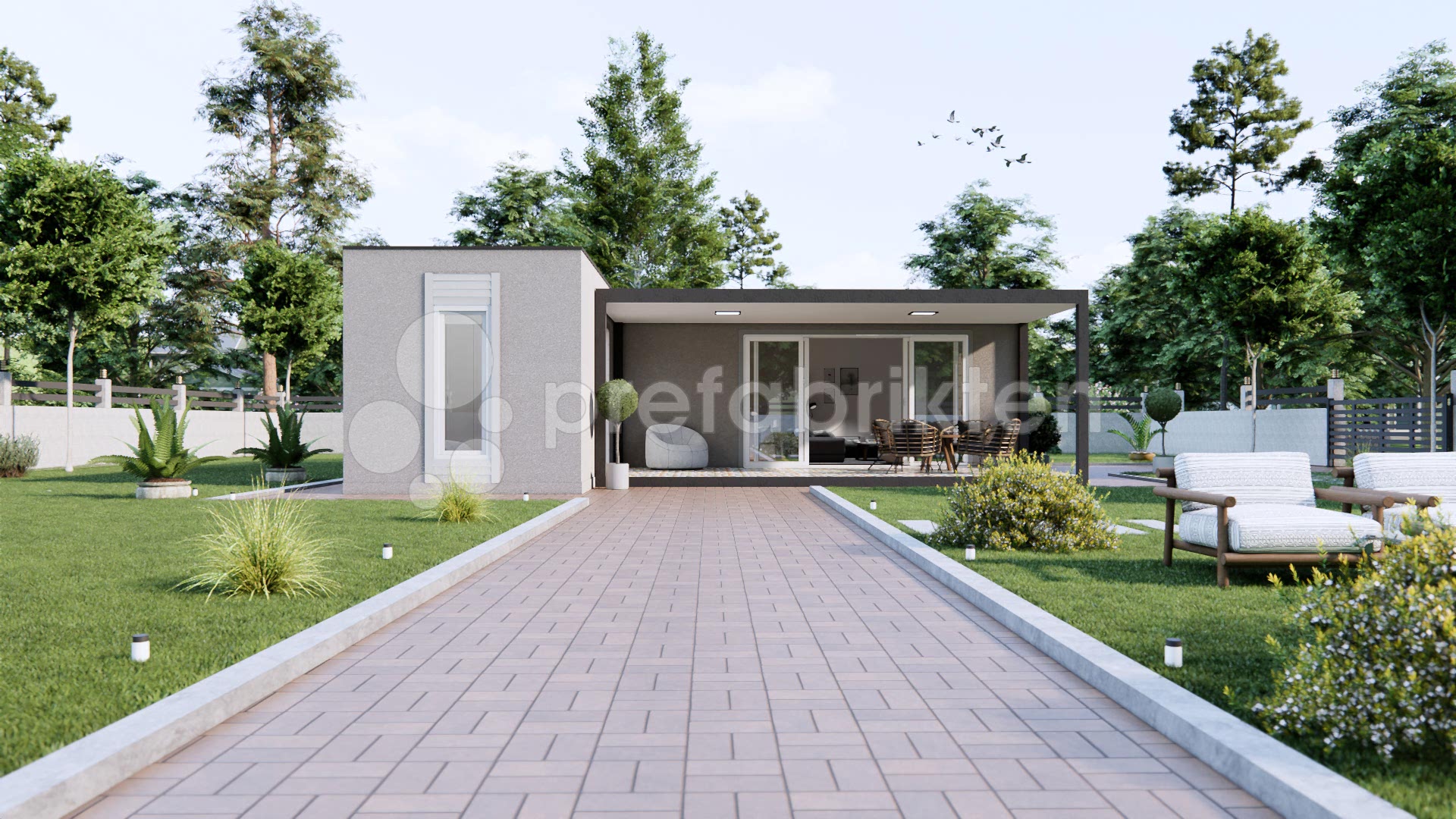 DAYANIKLILIK: Dış cephe kaplaması ise CE Belgeli (Yangın ve suya karşı dayanıklı) çimentolu yonga levhadır (Betopan- Fibercement).