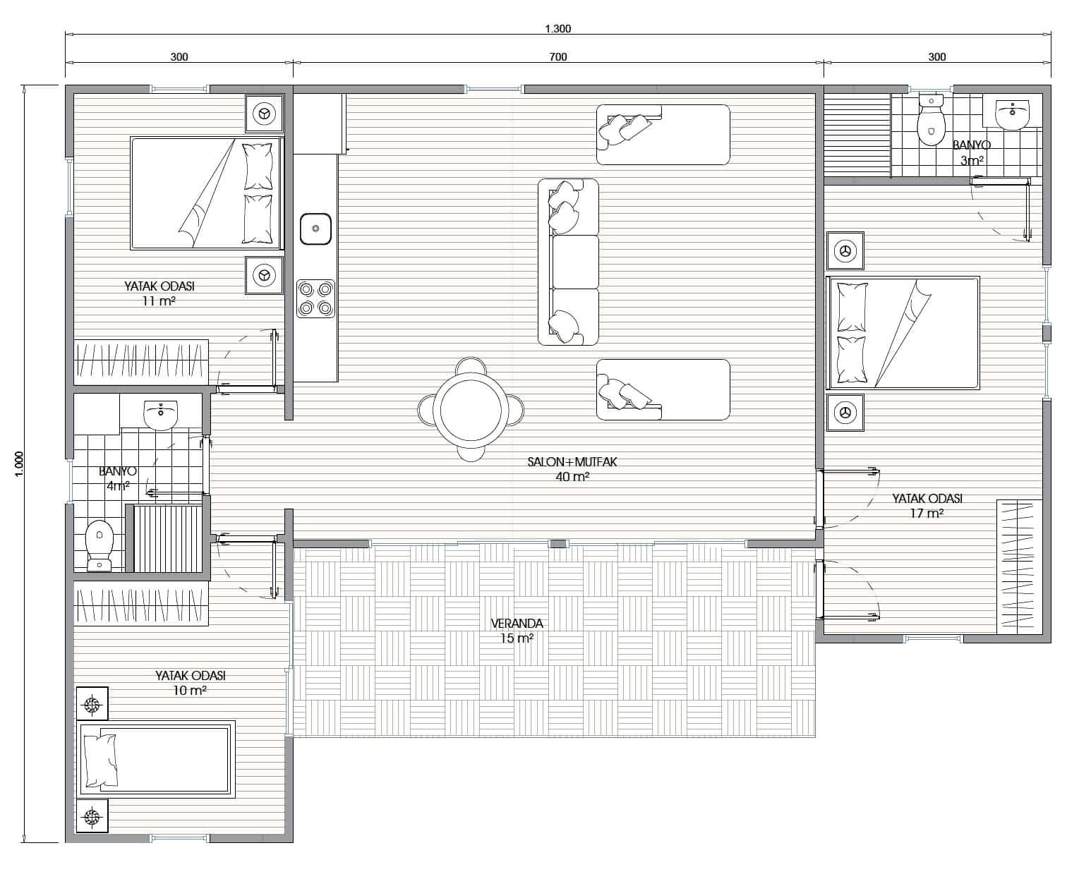 Koe-S Modül Ev-3+1 – 93m² + 15m² Veranda;