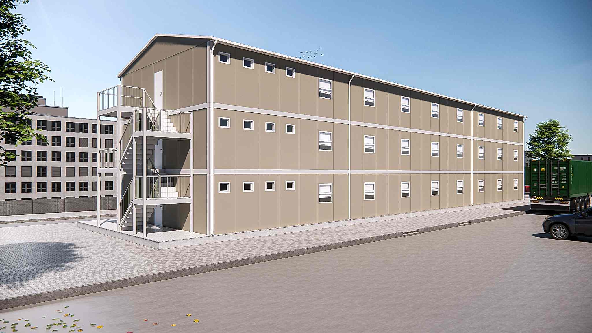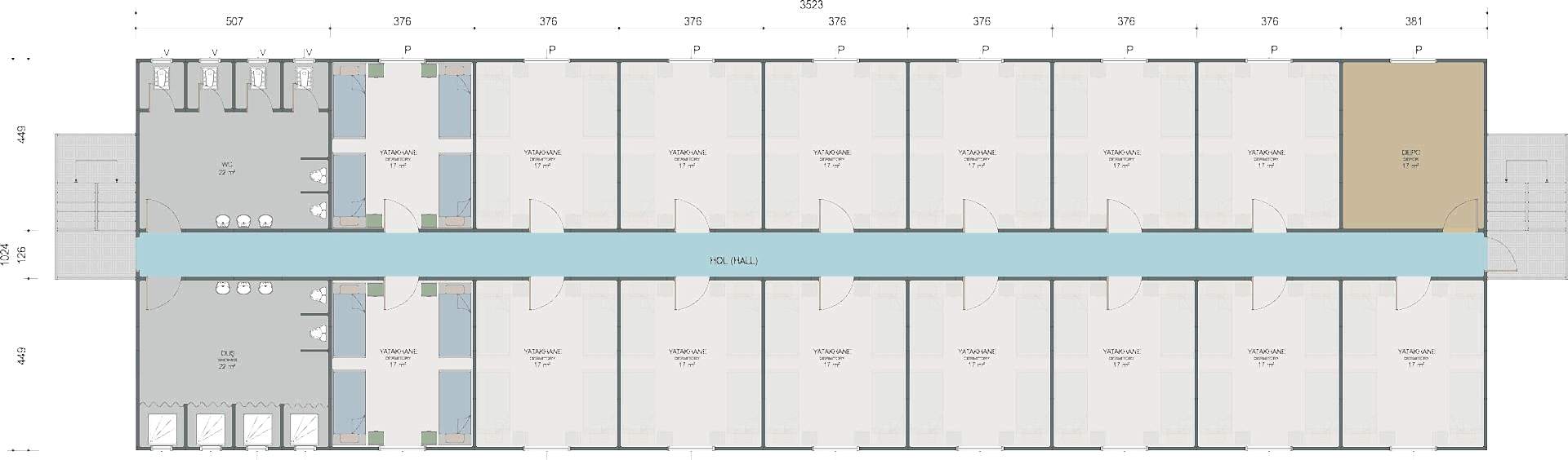 540 m² üç katlı prefabrik yatakhane, büyük ölçekli şantiyeler, maden sahaları, enerji projeleri, askeri kamp alanları ve yüksek konaklama ihtiyacı bulunan tüm tesisler için tasarlanmış profesyonel bir yatakhane yapısıdır. Üç katlı yapısı sayesinde yüzlerce personelin güvenli, konforlu ve düzenli şekilde konaklamasını sağlar.